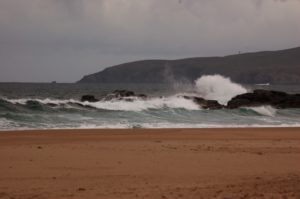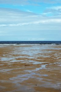 On our first night in Scotland, we stayed in Dornoch, which is on the east coast, a few miles down the road from the Glenmorangie distillery (which we visited, of course…) Dornoch is famous for its golf course. We got in early, so we asked the owner of our B ‘n’ B to recommend a walk. He sent us to the beach. Between the golf course and the sea is a miles-long, golden-sand beach. Who knew?